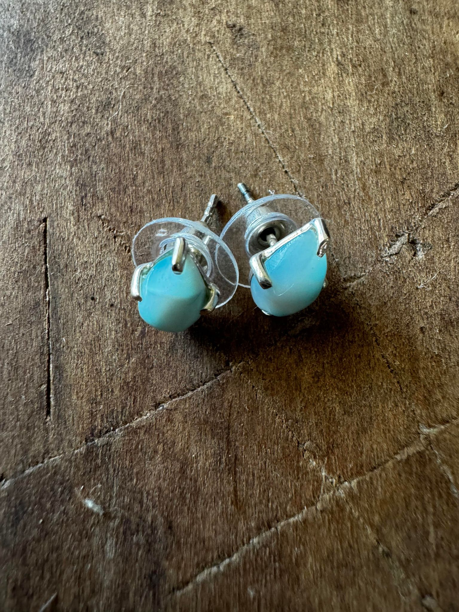 Larimar Earrings Stud Sterling Silver with Plastic Backs