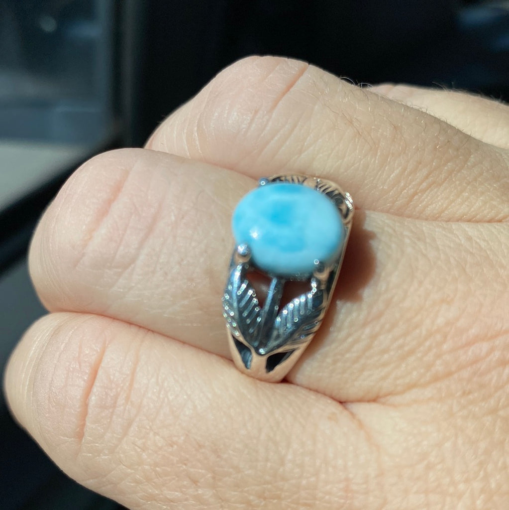 Add a touch of tranquil ocean beauty to your everyday look with this genuine Larimar ring!