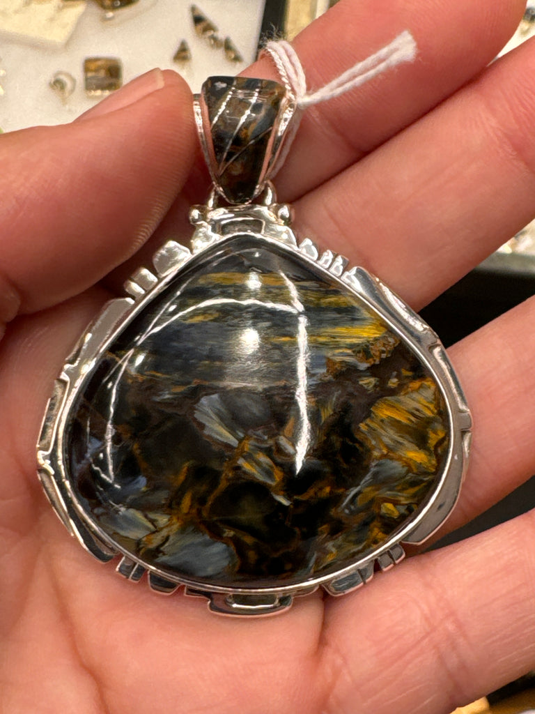 Light Blue Turquoise Pendant with Beaded Silver Edge – Large Bale, Artisan-Made in Santa Fe for First American Traders