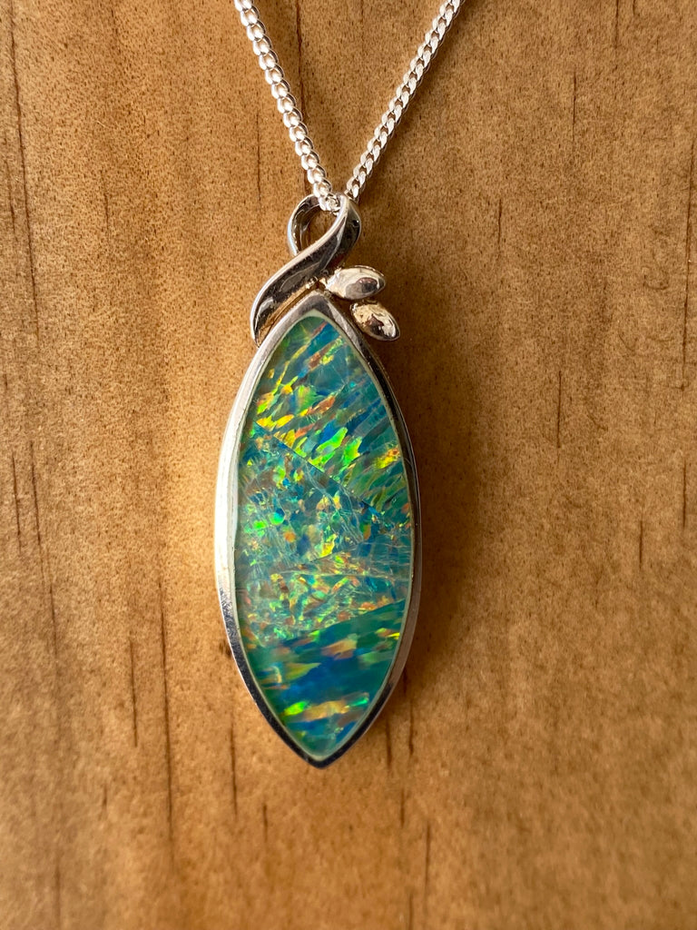 Larimar and Opal Sterling Silver Wire Wrap 22" Beaded Chain
