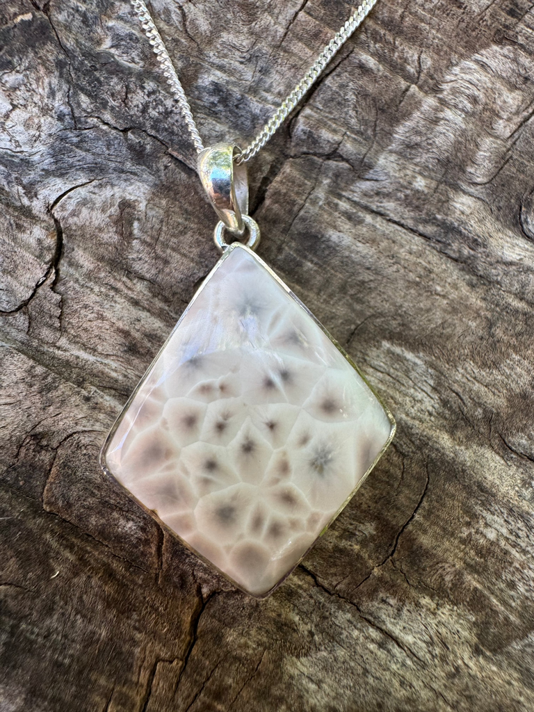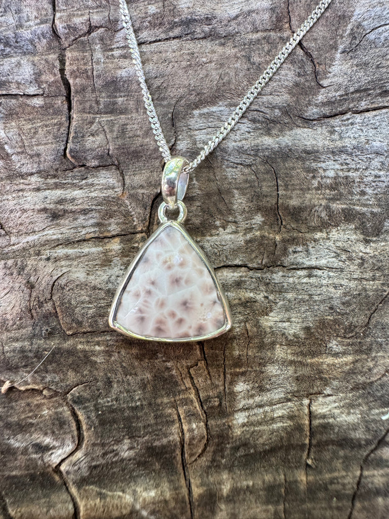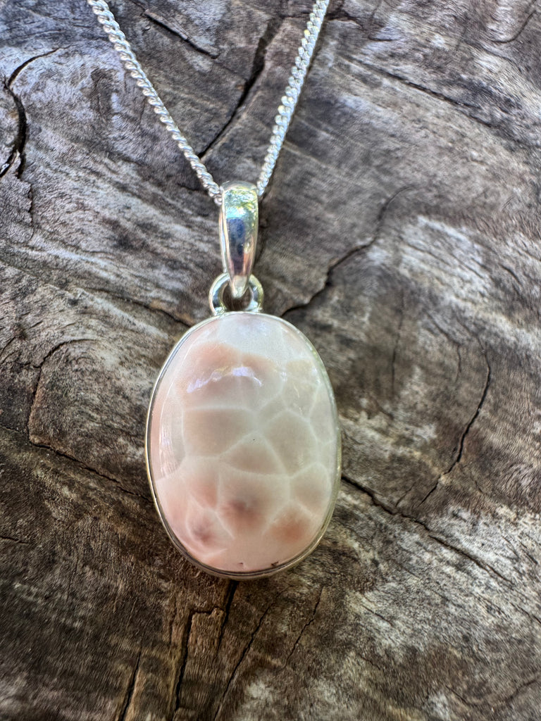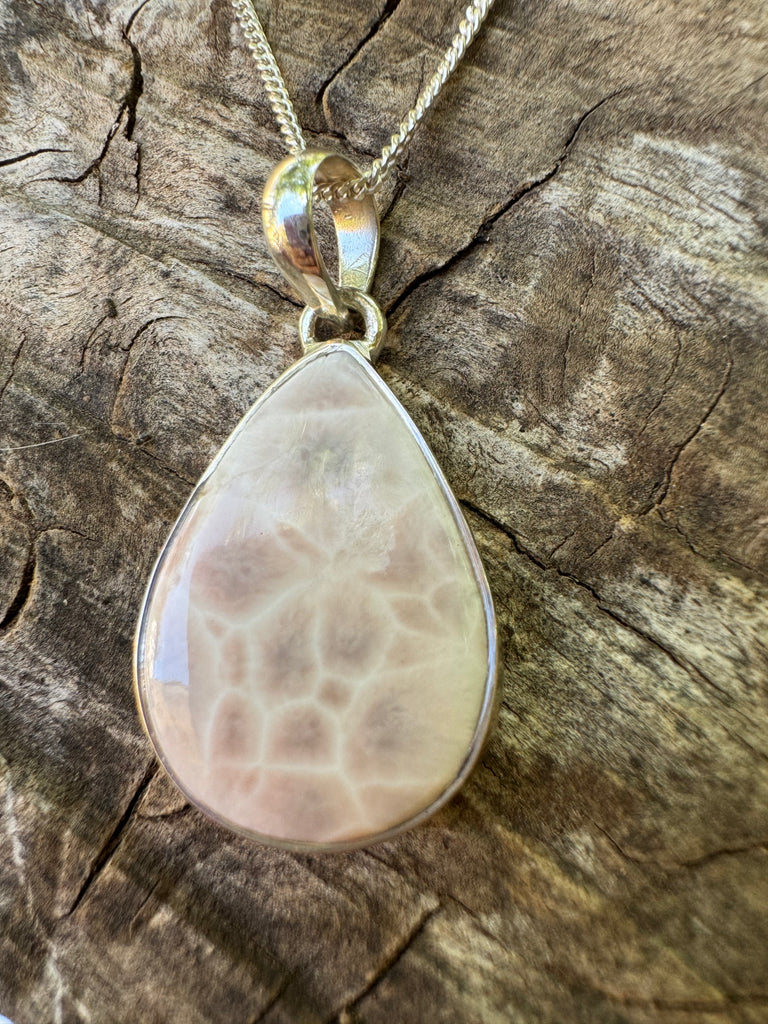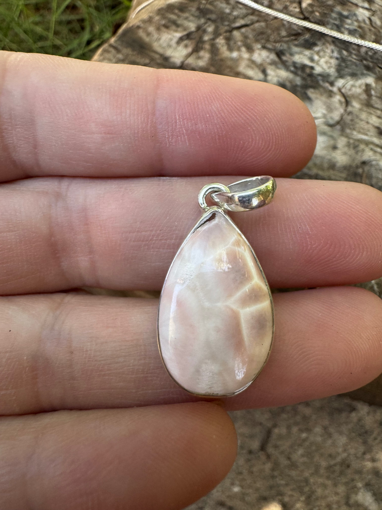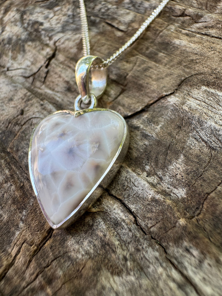 Natrolite Heart Pendant set in 925 Sterling Silver