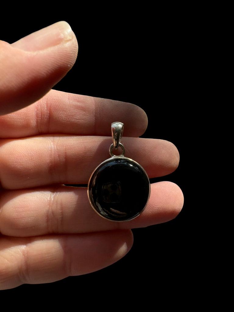 Petite Black Tourmaline in SS circle