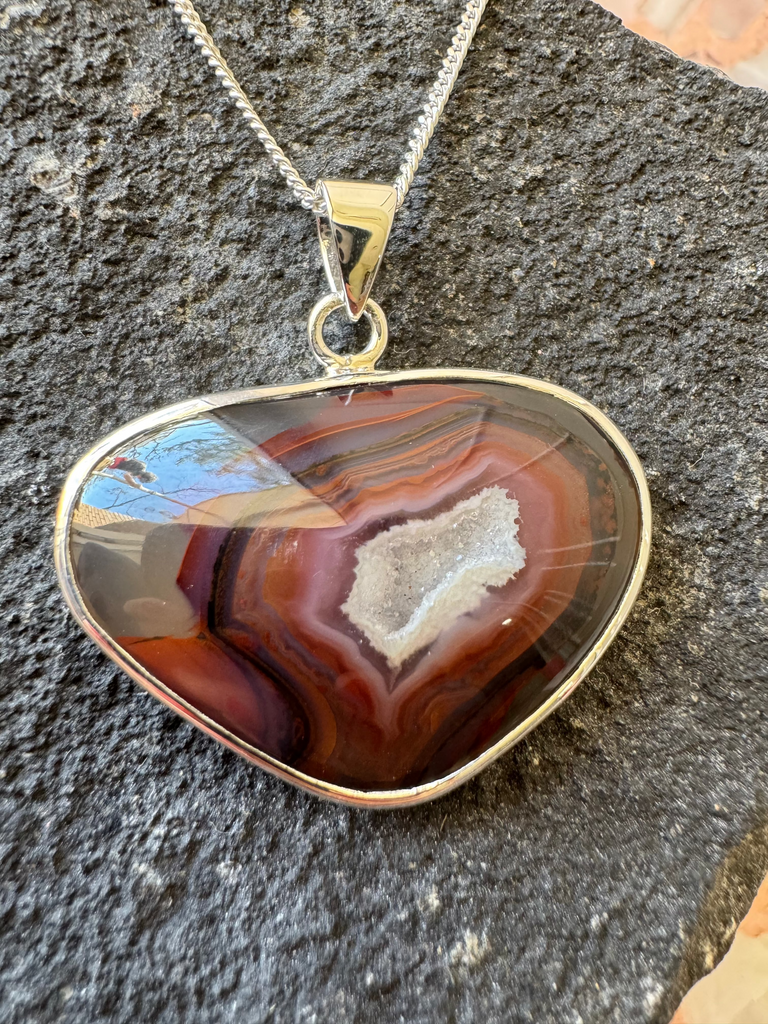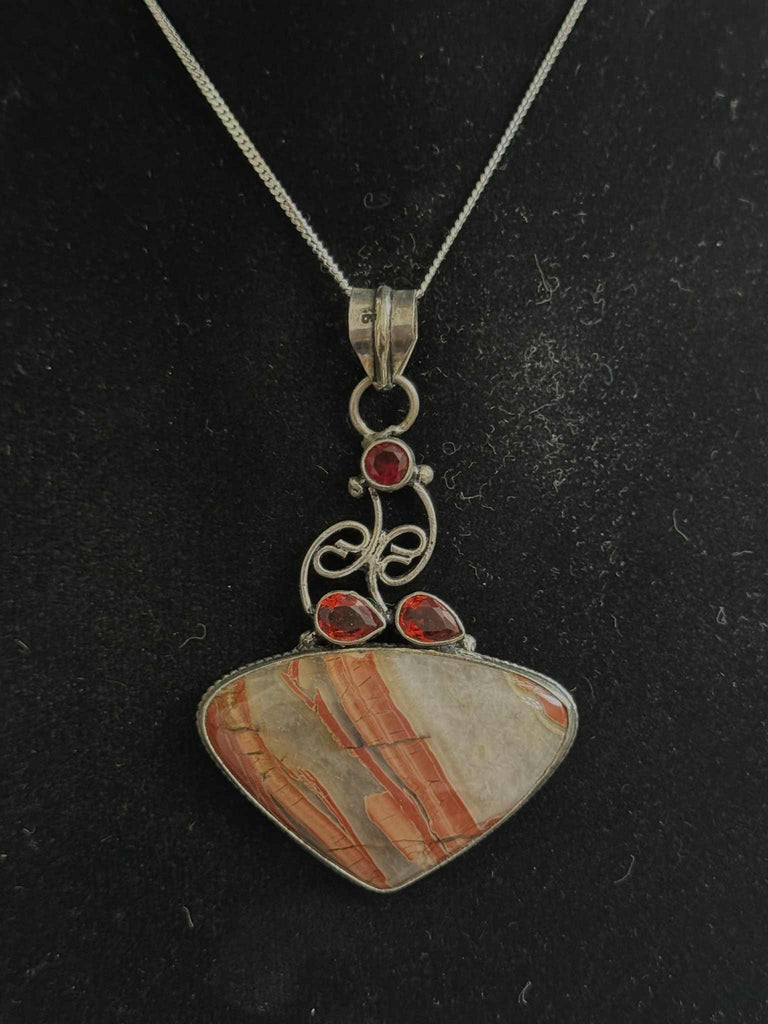 Rhodochrosite in 925 Sterling Silver Pendant with Adjustable Chain