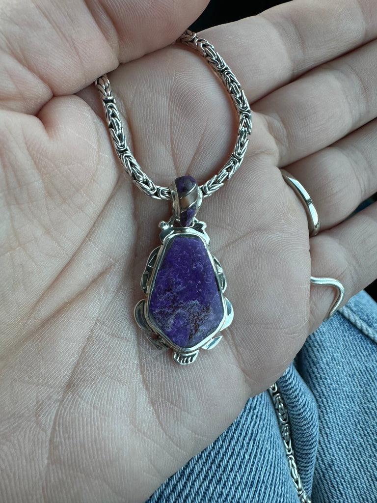 Rare Purple Sugalite with Inlay Bale WITH chain shown!!