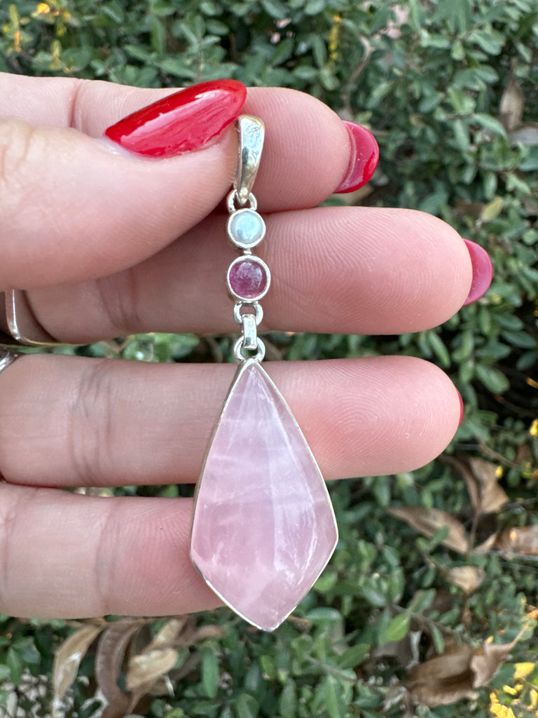 Rose Rhodonite Set in 925 SS with Rhodonite Chain
