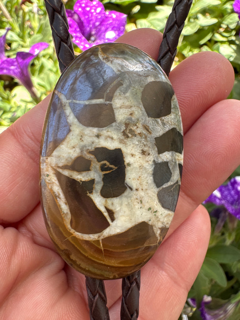 Septurian Nodule Brown Leather Sterling Silver Tip Bolo Tie