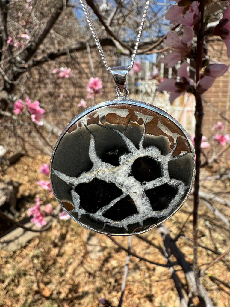Septarian Nodule ~ Utah ~Fossilized Mud Bubbles!! Set in Solid 925 Sterling Silver
