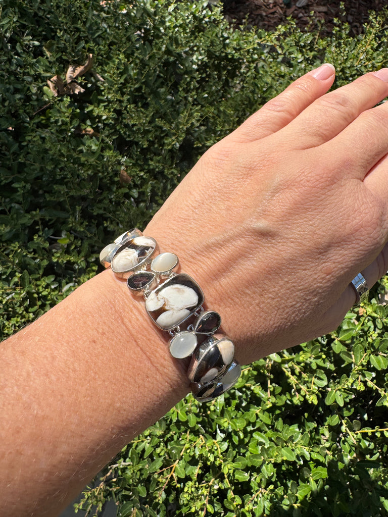 🌿 Peanut Wood, Moonstone & Smoky Quartz Sterling Silver Bracelet