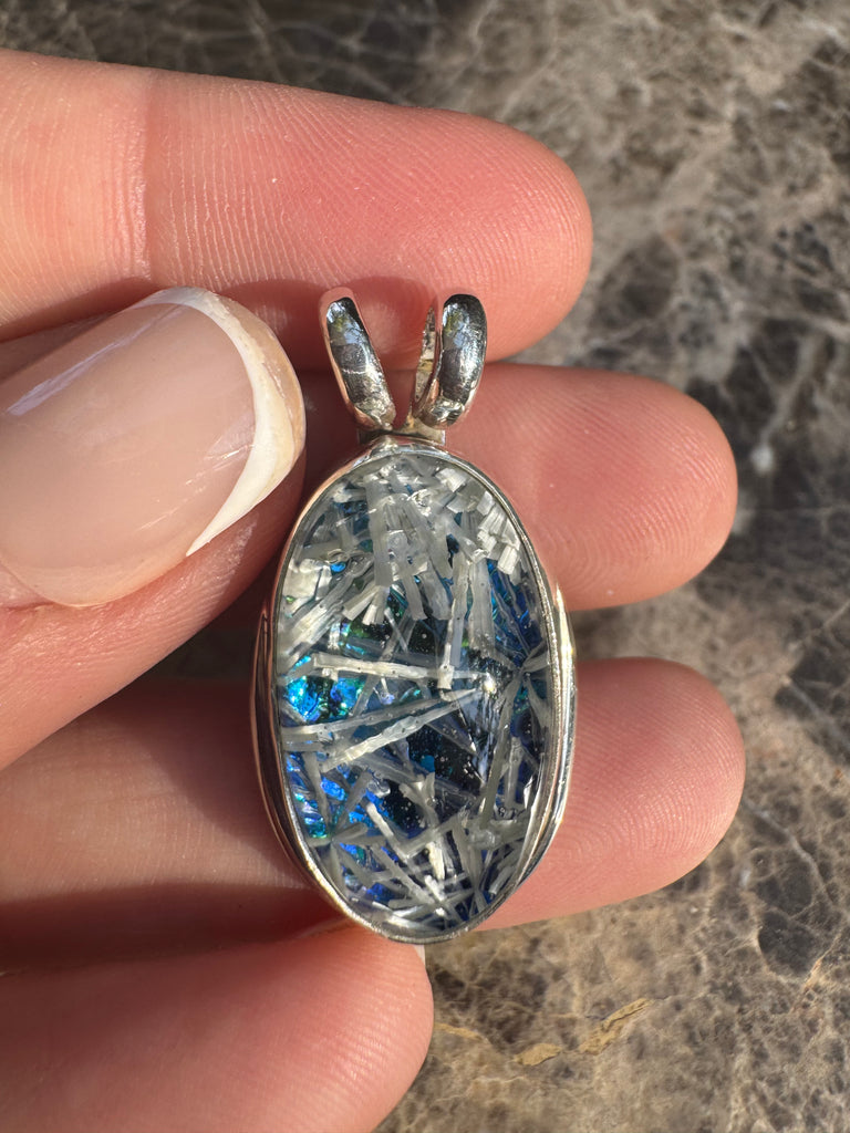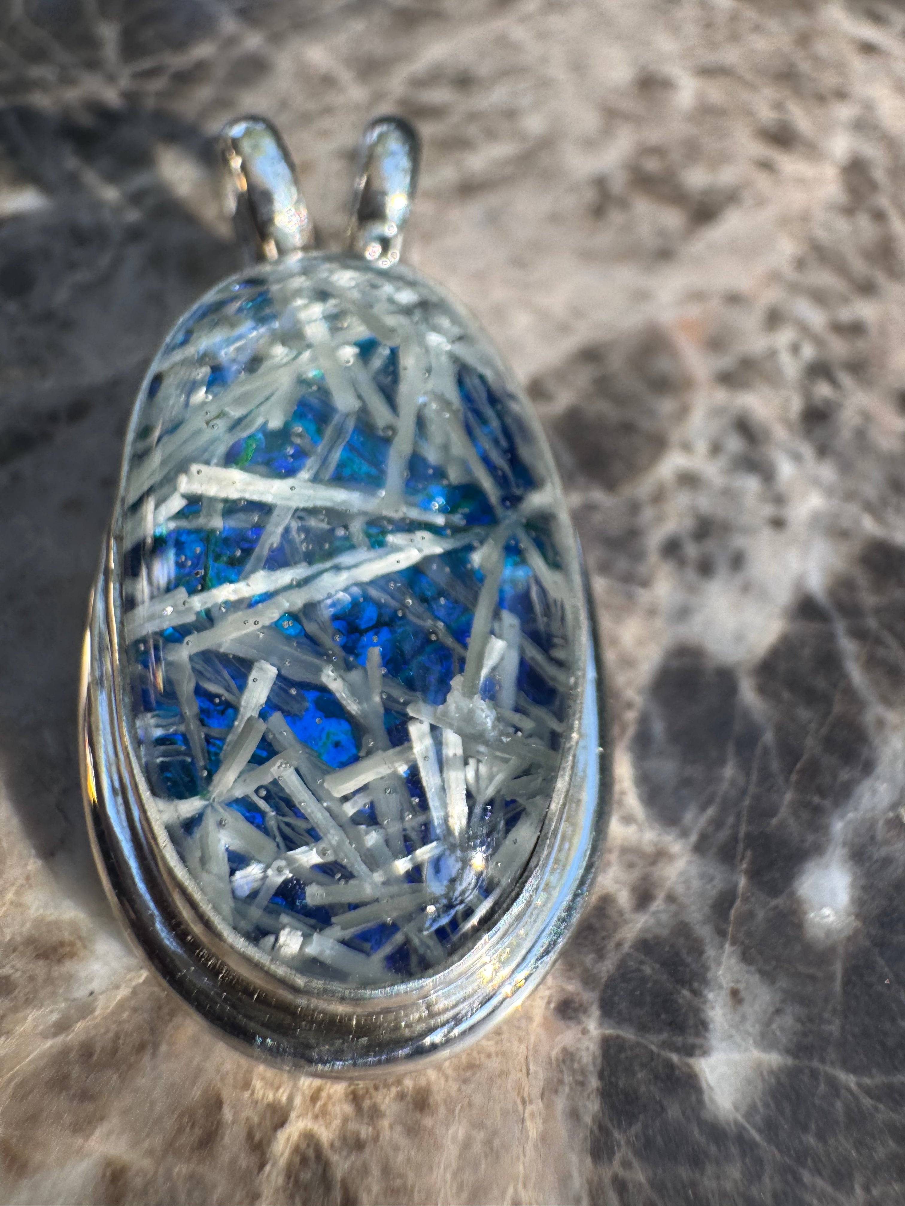 Each Bridewell Stone piece tells a story of transformation, from hidden mineral seams to wearable art, offering blue color with an an almost luminous inner glow. Set in 925 sterling silver, this pendant blends durability with timeless elegance, perfect for collectors who appreciate stones with both beauty and mystery.