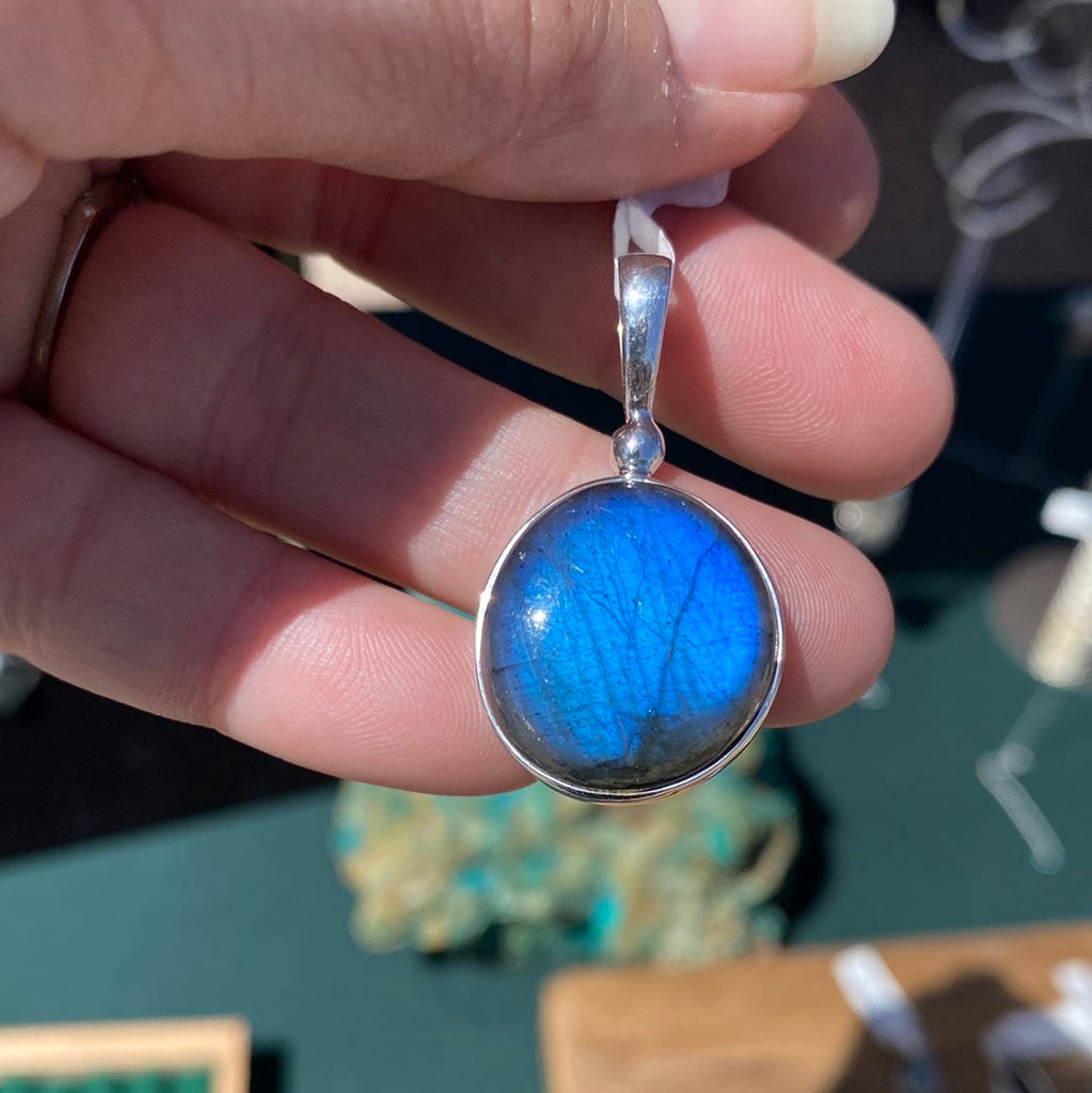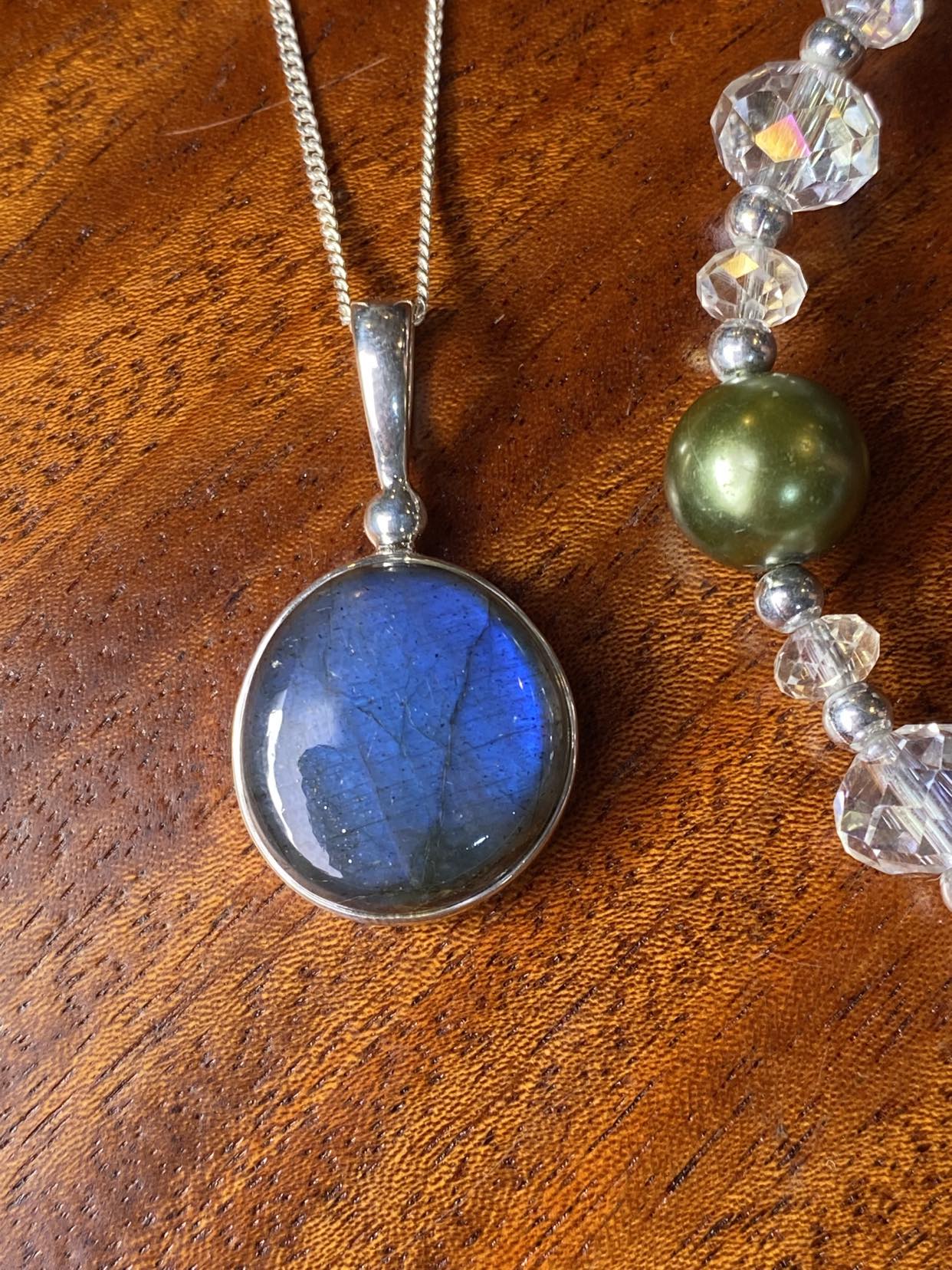 Labradorite is a feldspar known for its iridescent play of color. major deposits of labradorite are found in Labrador, Canada where Inuit beliefs hold that the fire of the Aurora Borealis fell from the sky and was captured in the stone.