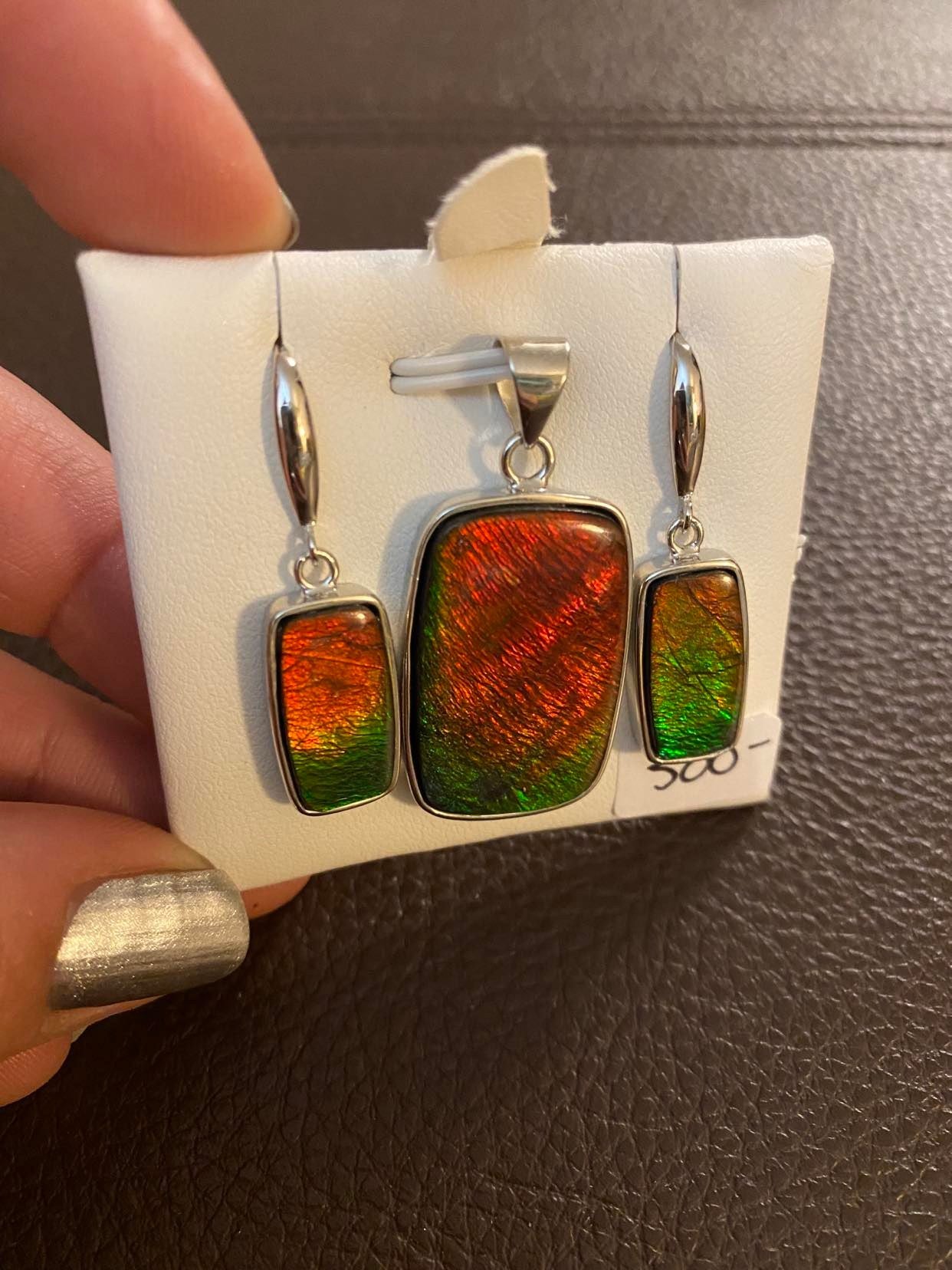 Rare Northern Lights Ammolite Earrings and Pendant Set