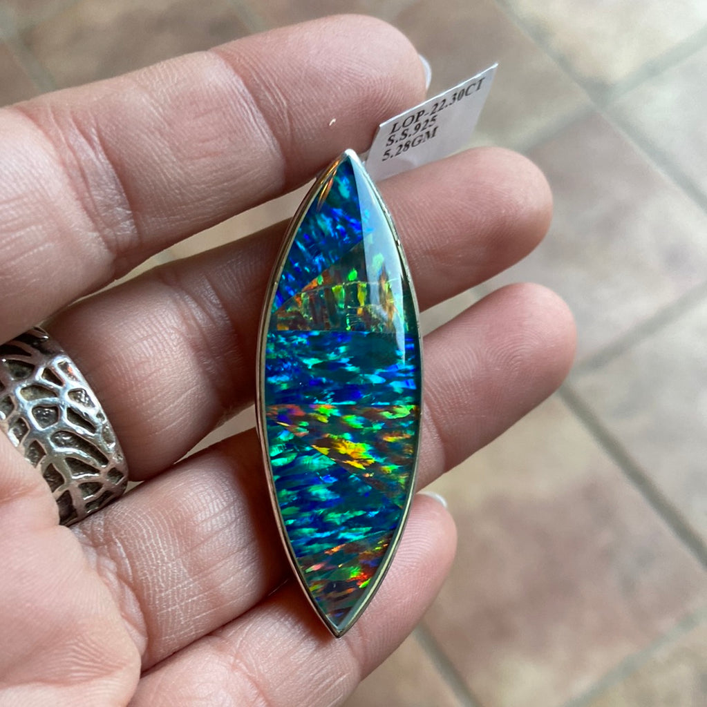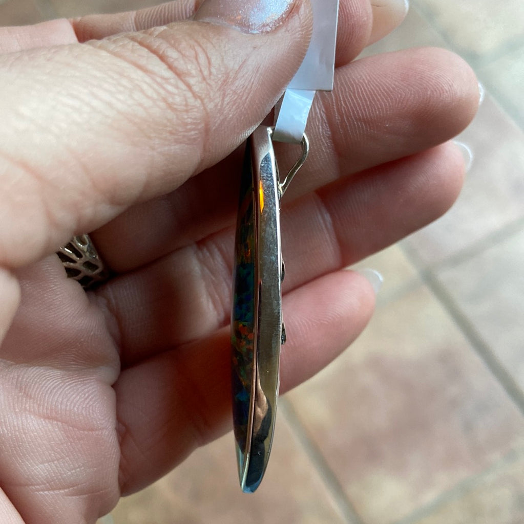 Mixed and matched Steller opal pendant. Stellar opal is a stunning, man-made opal from Japan with an amazing display of color.