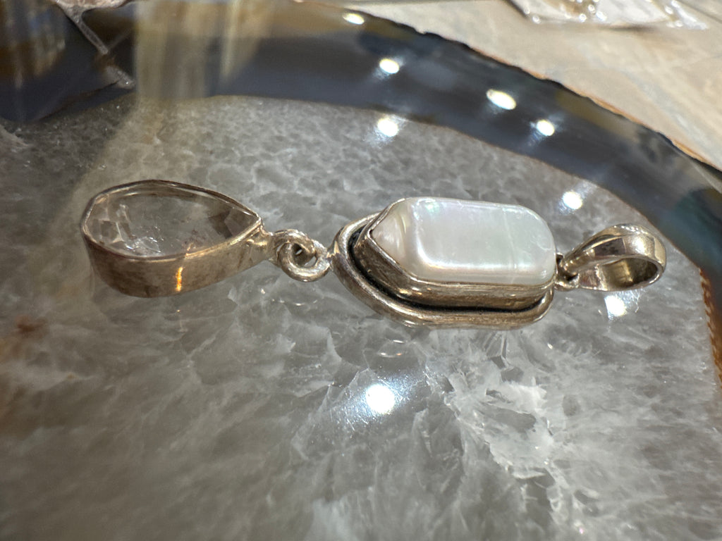 Freshwater Pearl with Herkimer Diamond Pendant with Sterling Silver