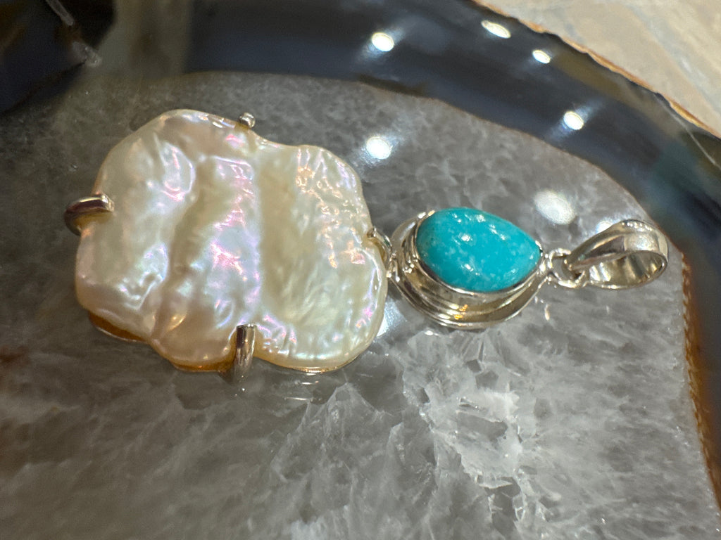 Freshwater Pearl with Turquoise Pendant with Sterling Silver