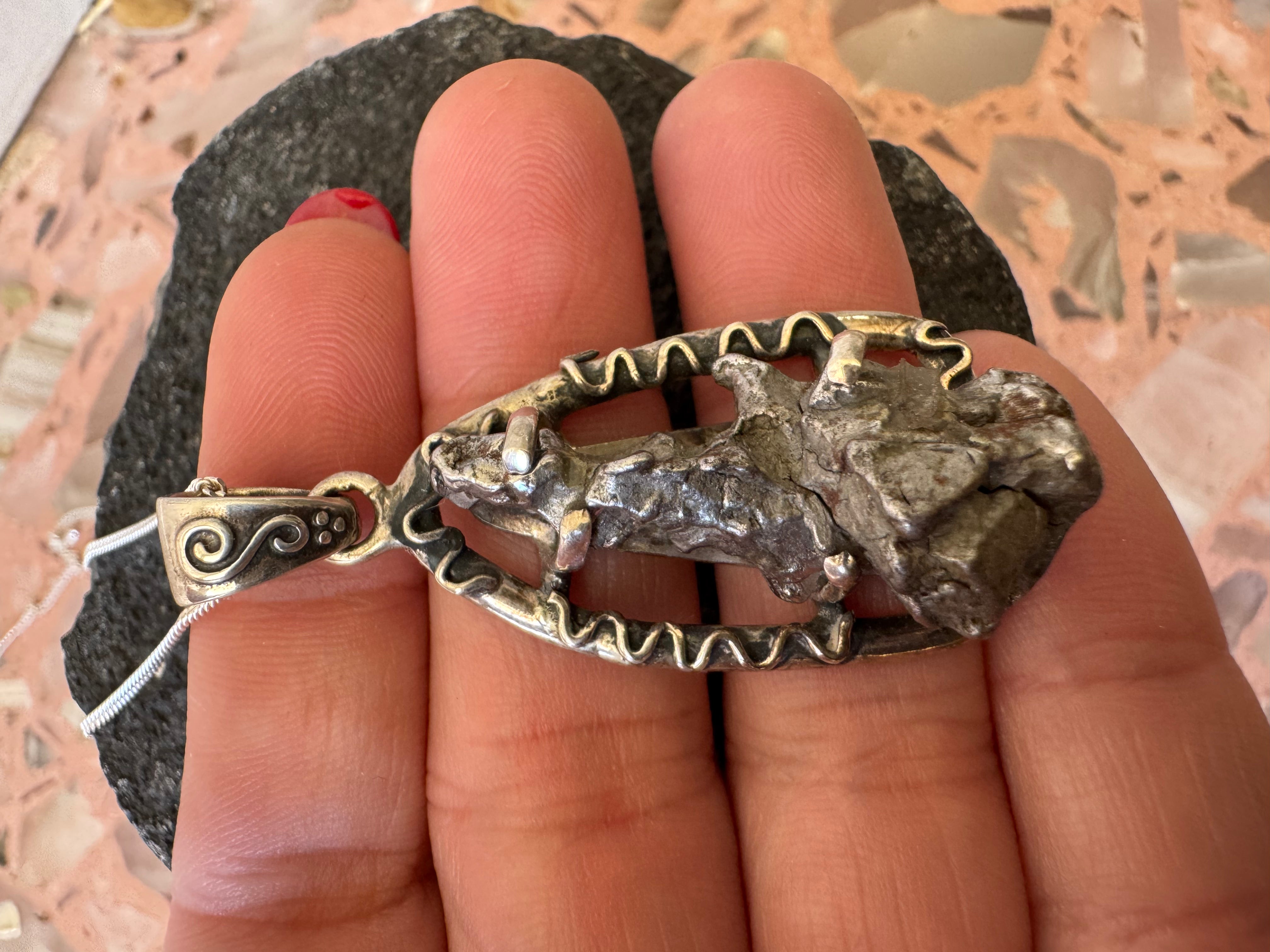 A rock from space! Meteorites are fragments of asteroids that made it to earth! This one deserved custom silverwork!