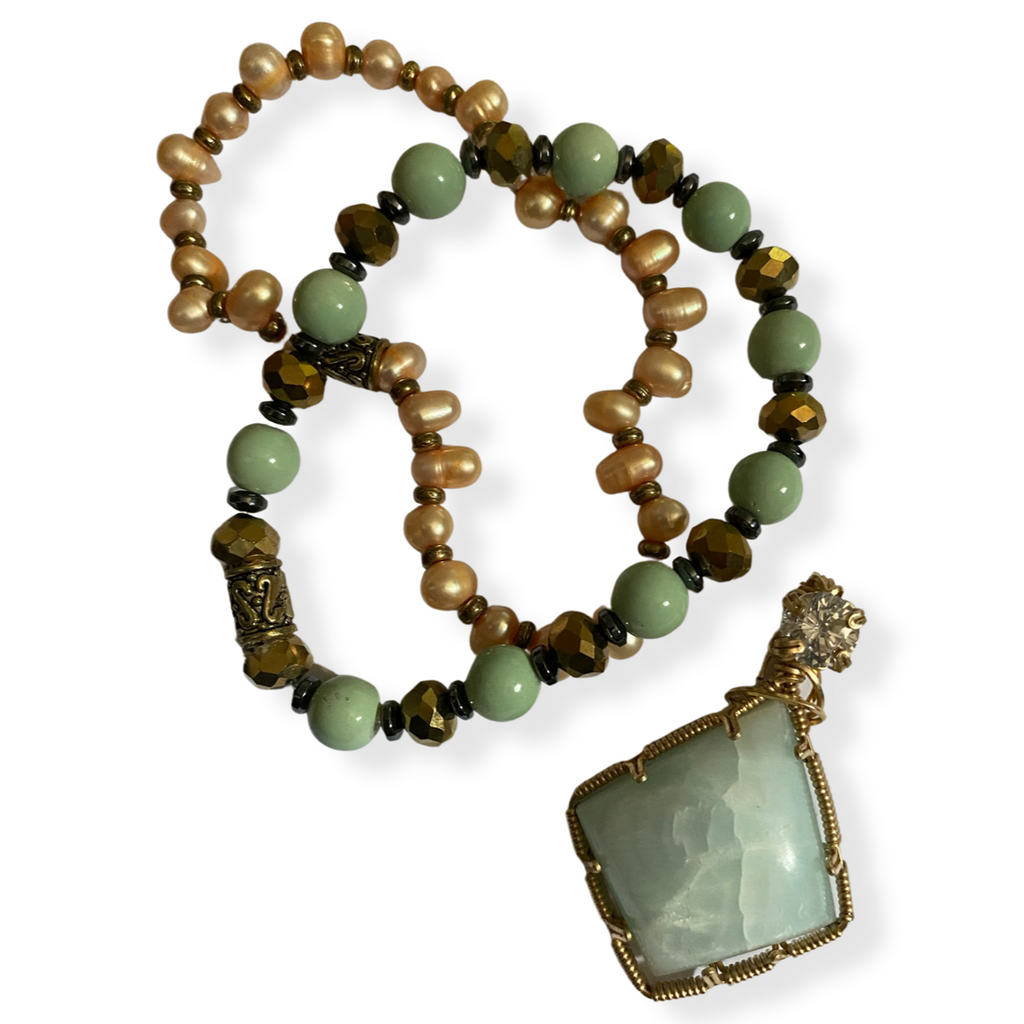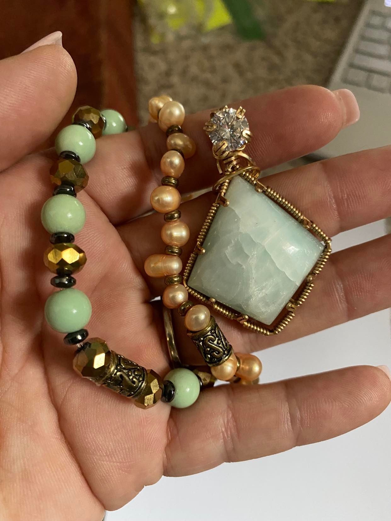 Michael Collings CZ Crystal Pendant and Bracelets. Mother of Pearl