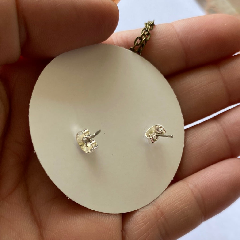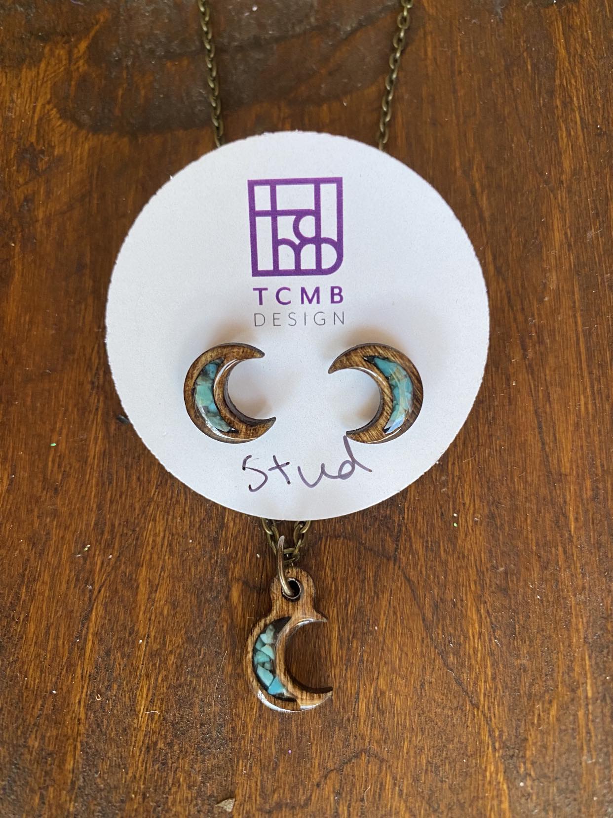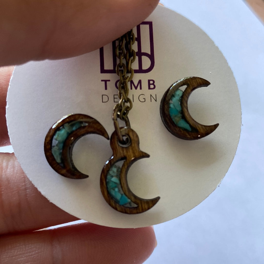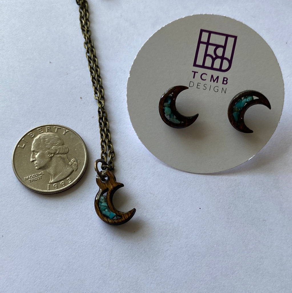 Moon Small Wood 24” necklace and Earrings Set