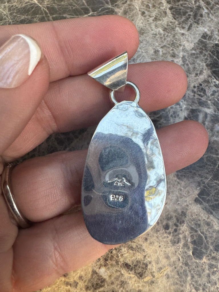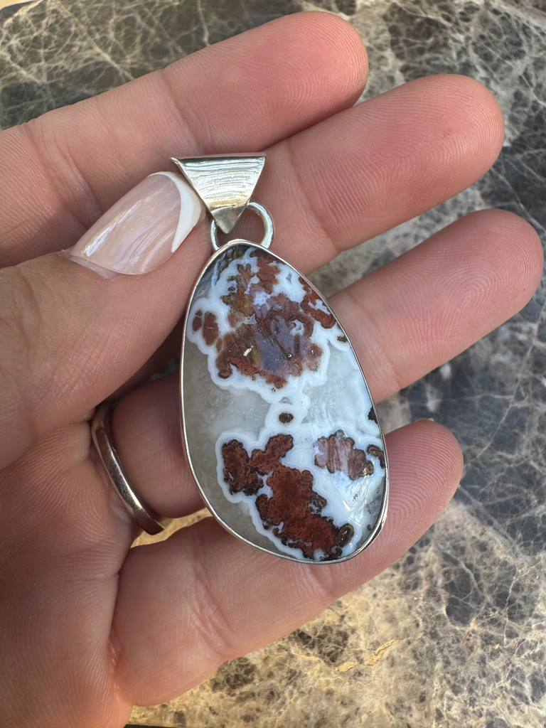 Sourced from an extinct deposit near Mariposa County, Mt. Bullion agates are prized for their painterly contrast and rarity; the mine has long since disappeared into history. Set in solid 925 sterling silver, this pendant preserves a lost Californian treasure, a landscape frozen in quartz.