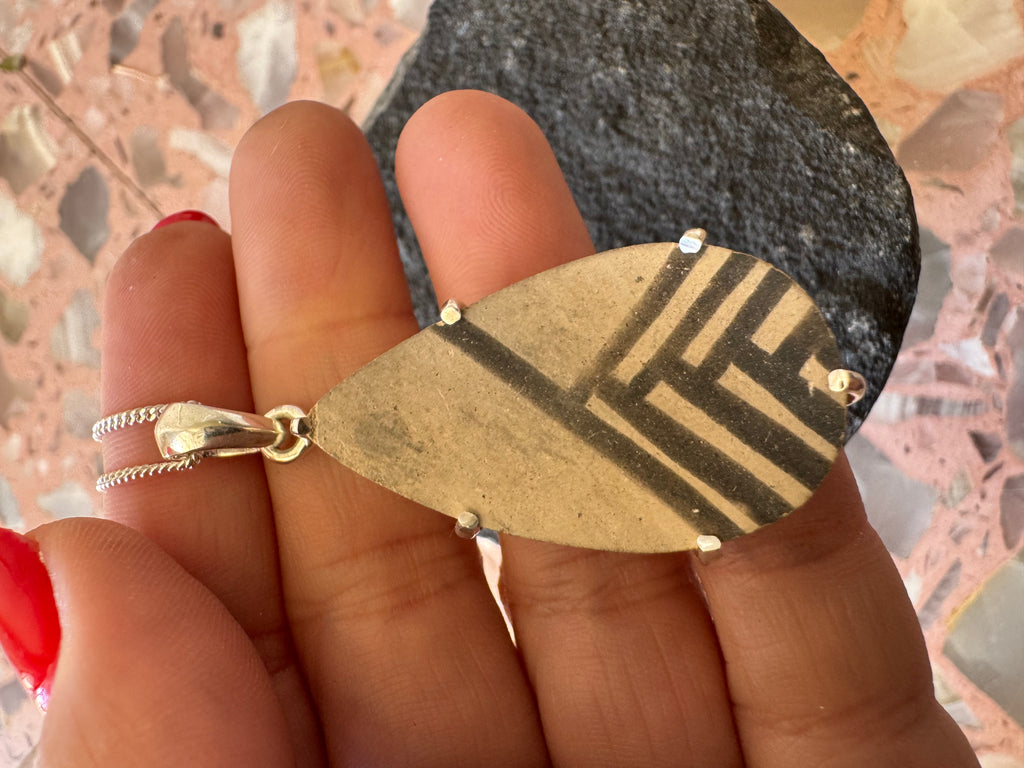 Pottery tile set in 925 sterling silver with 24” adjustable chain
