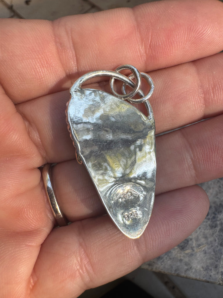 Set in solid 925 sterling silver with a touch of bronze accent, this pendant captures both history and geology — a shimmering testament to resilience, light, and the hidden beauty within hardship.