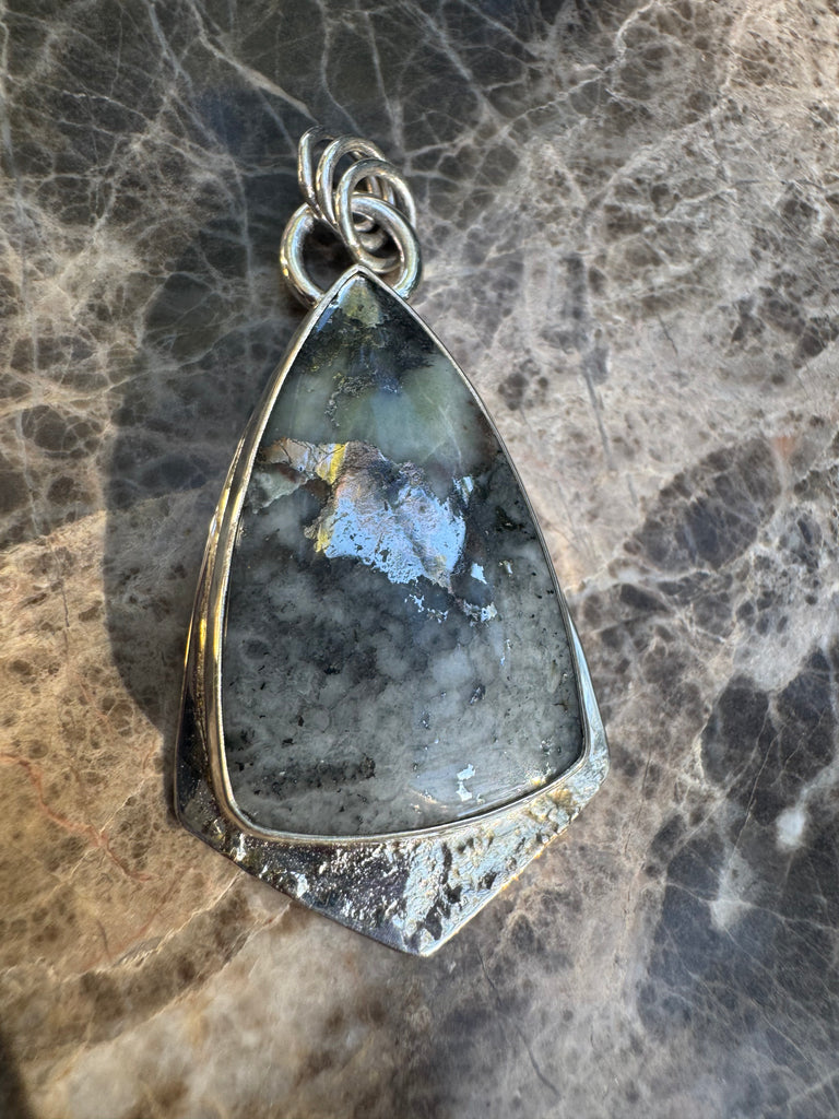Forged in the aftermath of a meteor strike 1.8 billion years ago, this pendant contains native silver from the legendary Sudbury Impact Crater in Ontario — one of Earth’s oldest and largest known impact sites. The collision melted and reshaped the crust, leaving behind rich metallic veins of silver and nickel that tell a story of cosmic violence and planetary rebirth.